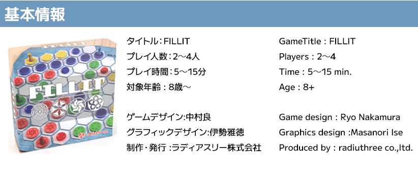 『FILLIT(フィリット)』は、自分のコマが進んだルート上に自分の色のチップを置いていき、全てのチップを使い切ったプレイヤーが勝利となります。